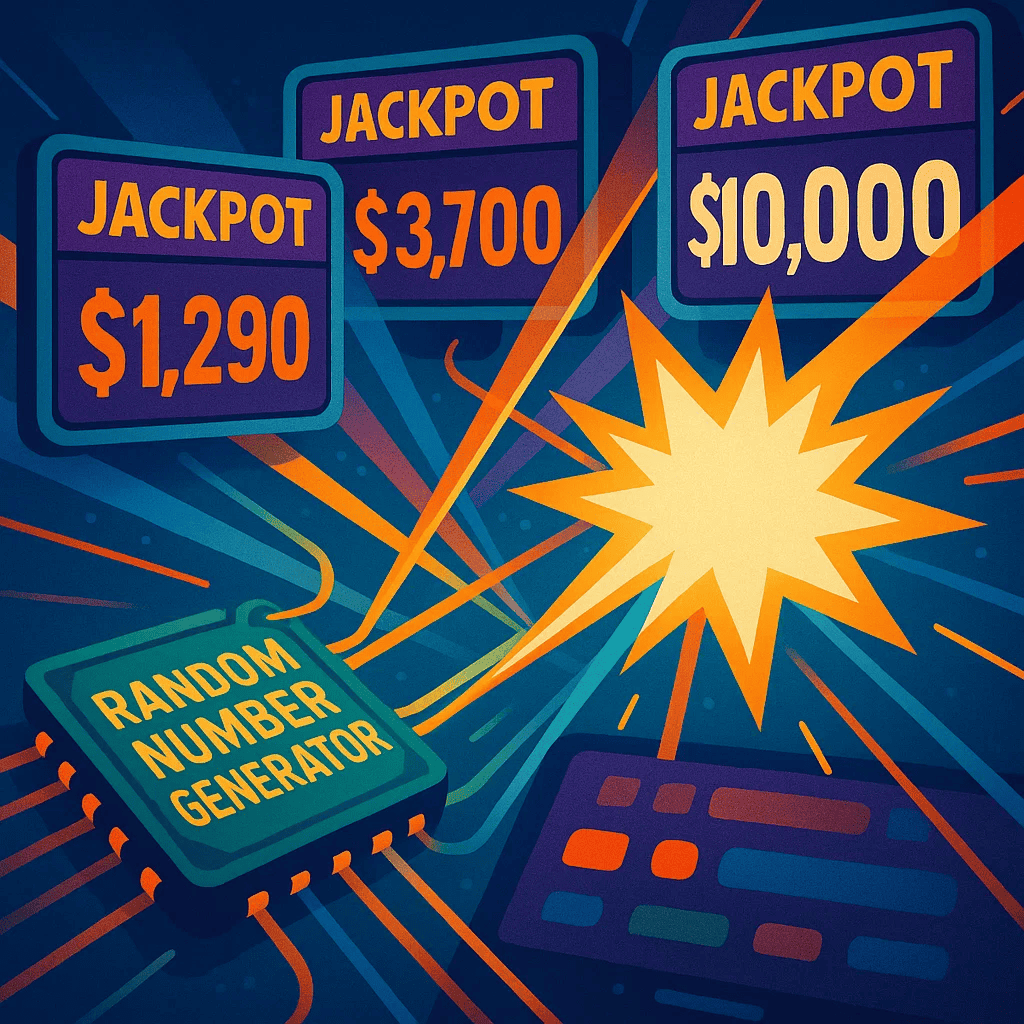 Unatoč vatrometu na ekranu, jackpotove kontrolira isti generator slučajnih brojeva koji određuje obične dobitke. Kada pritisnete okreni, RNG odabire ishod iz vrlo velikog skupa mogućnosti. Neke od tih mogućnosti uključuju pokretanje jackpota; većina ne.